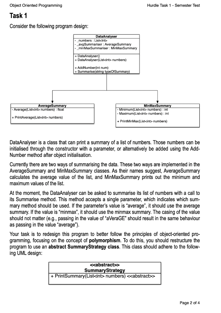 Solved Object Oriented Programming Hurdle Task 1 Semester Chegg Com